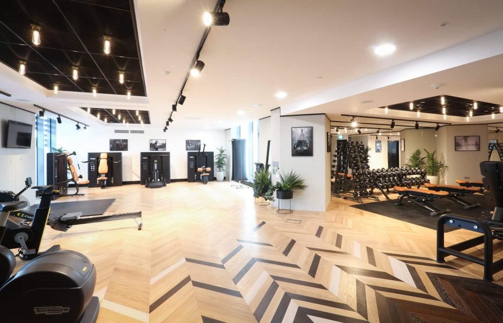 In residential and hotel gyms, a more premium aestheticis often preferred, combining wood, rubber and luxury vinyl tiles for a softer, premium feel.