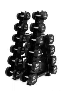 These hardwearing solid-end dumbbells are designed to perform the perfect press, muscle-creating curl or bicep-building row. With a 1-10kg set (1kg increments x10 pairs), a 6-24kg range (2kg increments x10 pairs), a 12-30kg set (2kg increments x10 pairs) and with optional storage rack.