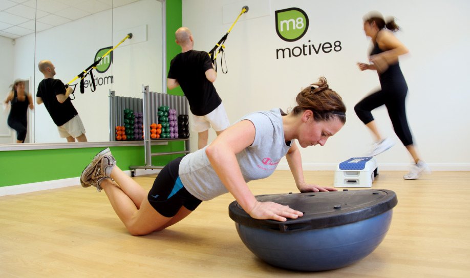 “One of the big trends in training these days can be done with just body weight. The old school ways are coming back into fashion! Pull ups, press ups, jumps off a bench into a squat are all great things to do whilst waiting for equipment,” explains Nick Sadler, Director of motive8.