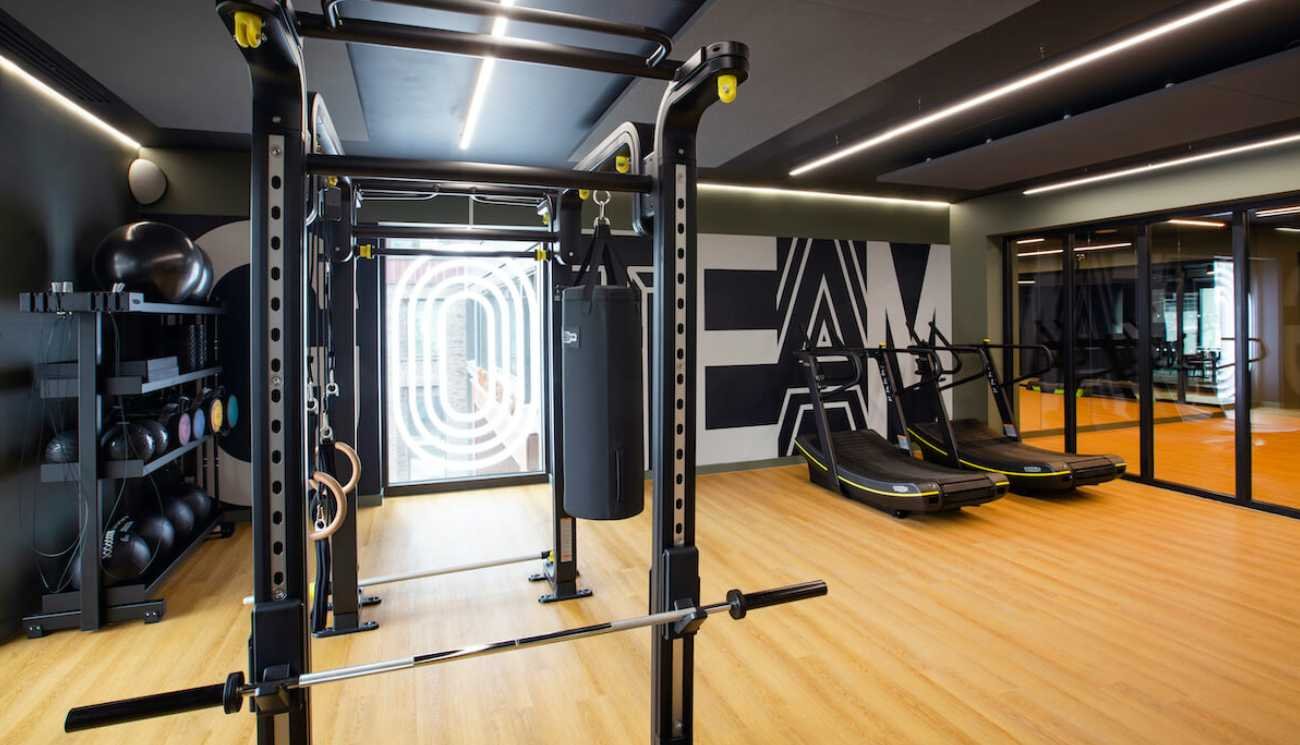 The gym features a full range of Technogym cardio and resistance equipment, alongside best of breed cross trainers, air bikes and rowing machines. A defined free weights area includes a wide range of dumbbells and other strength equipment, such as half racks, smith machines, adjustable benches and cable machines. A full size Omnia 8 functional rig was also installed, allowing for individual or group training sessions.