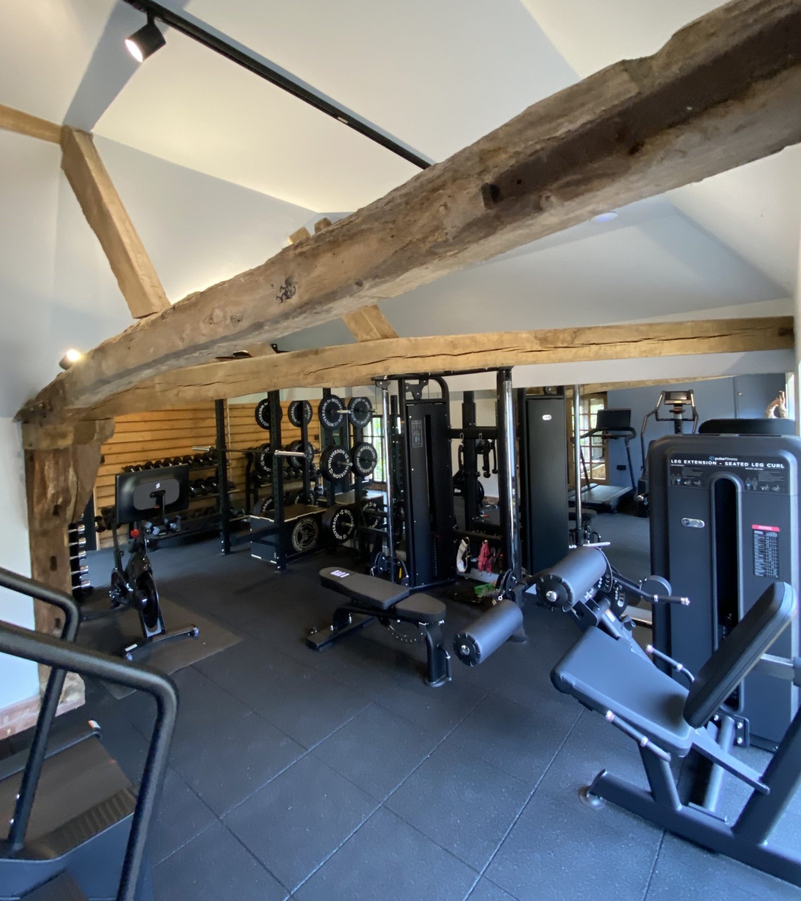 This home gym project stands out as one of our most memorable residential transformations. Located in the heart of the countryside, this Grade II listed barn was expertly converted into a fully equipped home gym, blending the charm of its historic architecture with the functionality of modern fitness equipment.