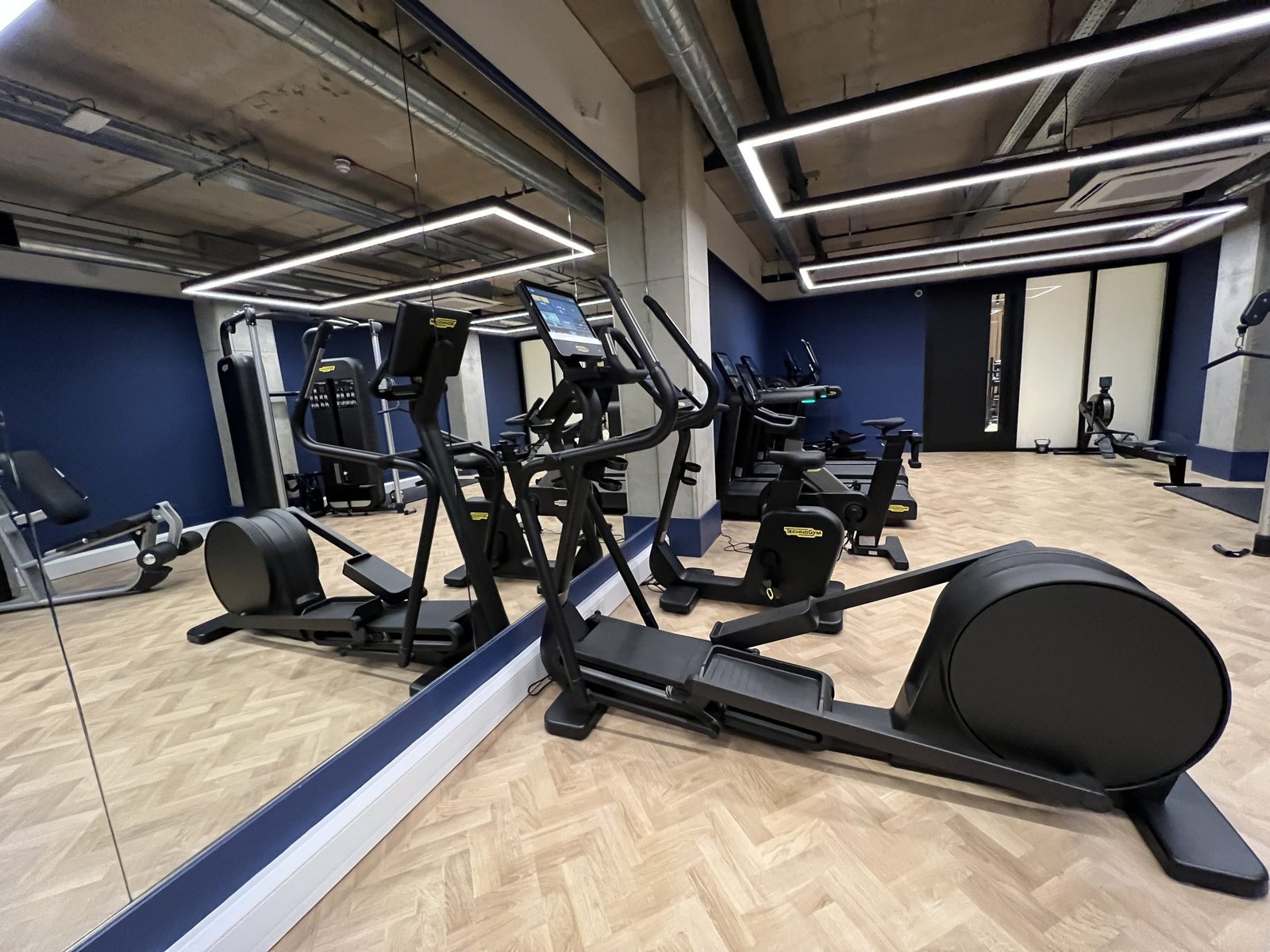 Set in the basement of this pet friendly apartment block, the gym is laid out in 2 sections. Entering the first room and main part of the gym, we opted for state-of-the-art Technogym and Erimus strength kit. Upon entry you will find the latter on your right, a weights area complemented with floor to ceiling mirrors. As you continue into the room, all cardio machines benefit from the latest touch screen technology, and the industrial basement aesthetic runs throughout.